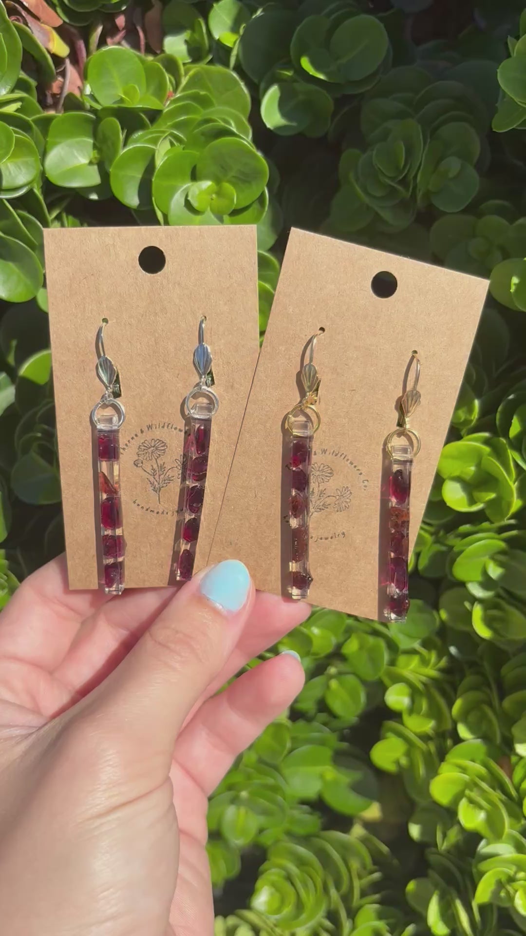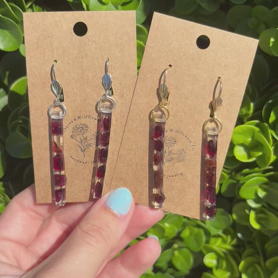 Bar Earrings made of Garnet stones set in resin.