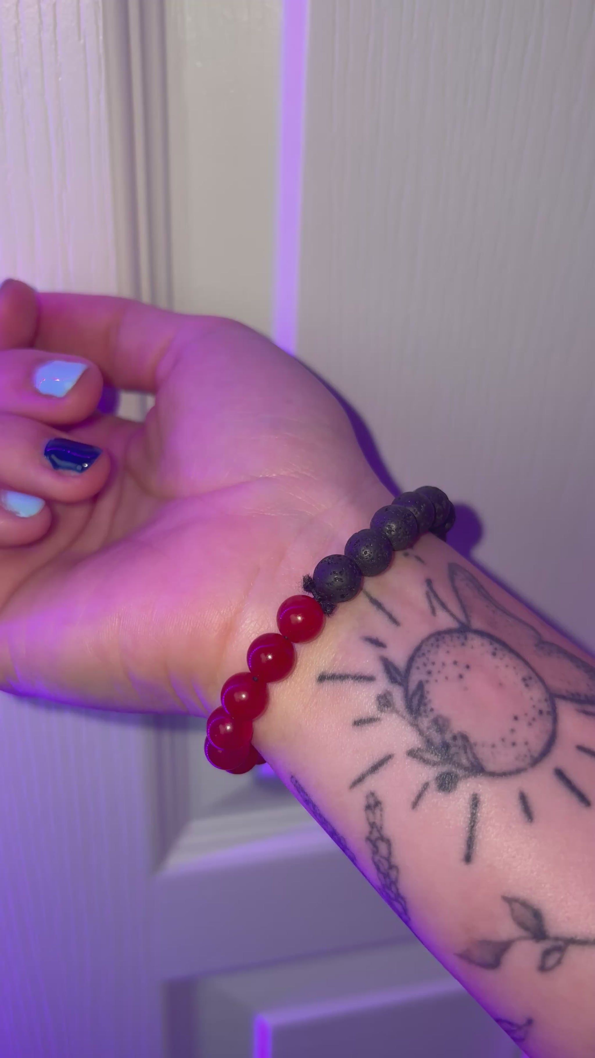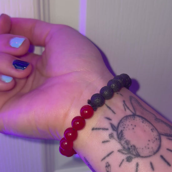 This piece is another yen and yang styled bracelet with half of the beads being Red Jasper, and the other half being Black Lava Rock.